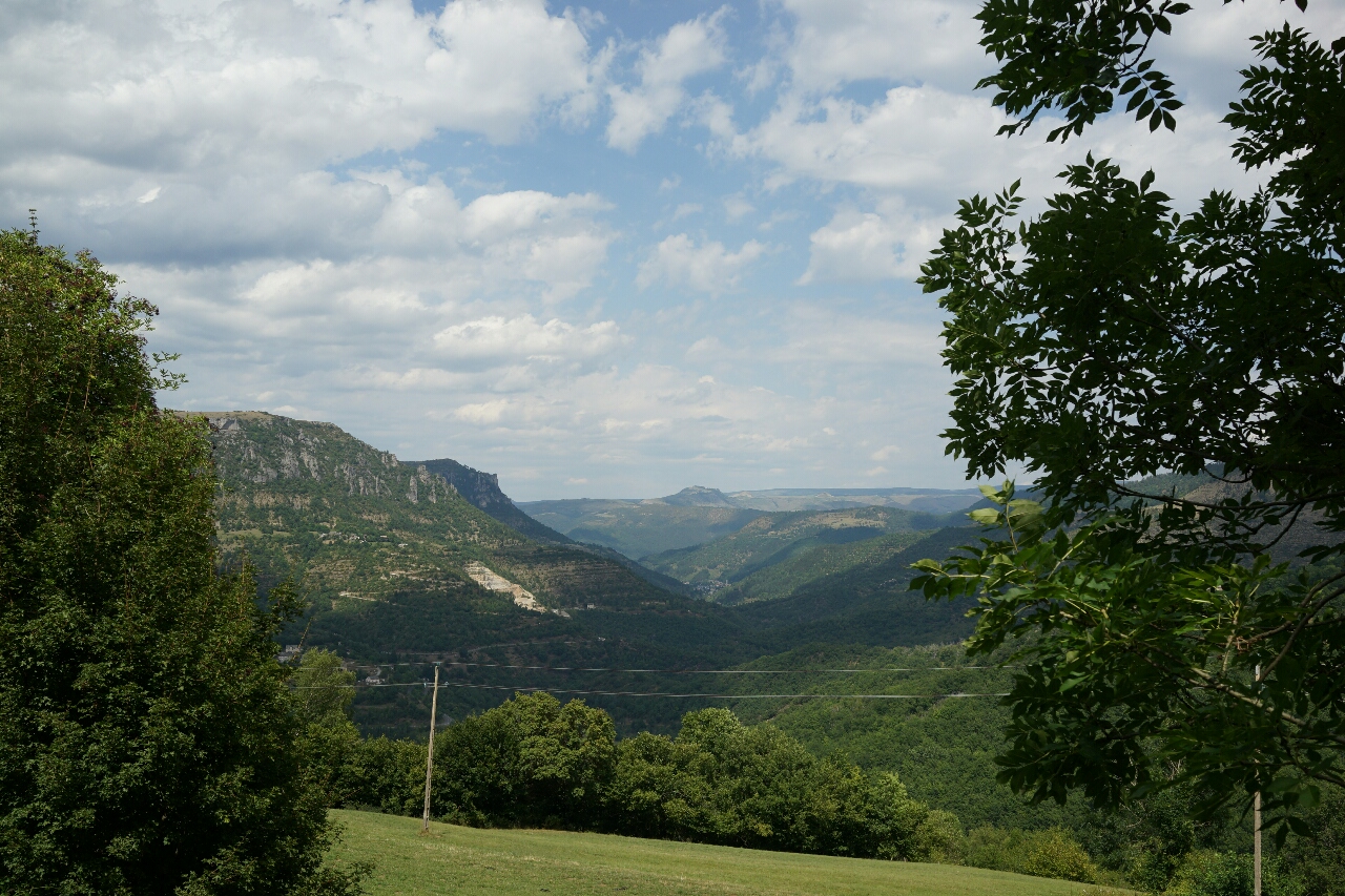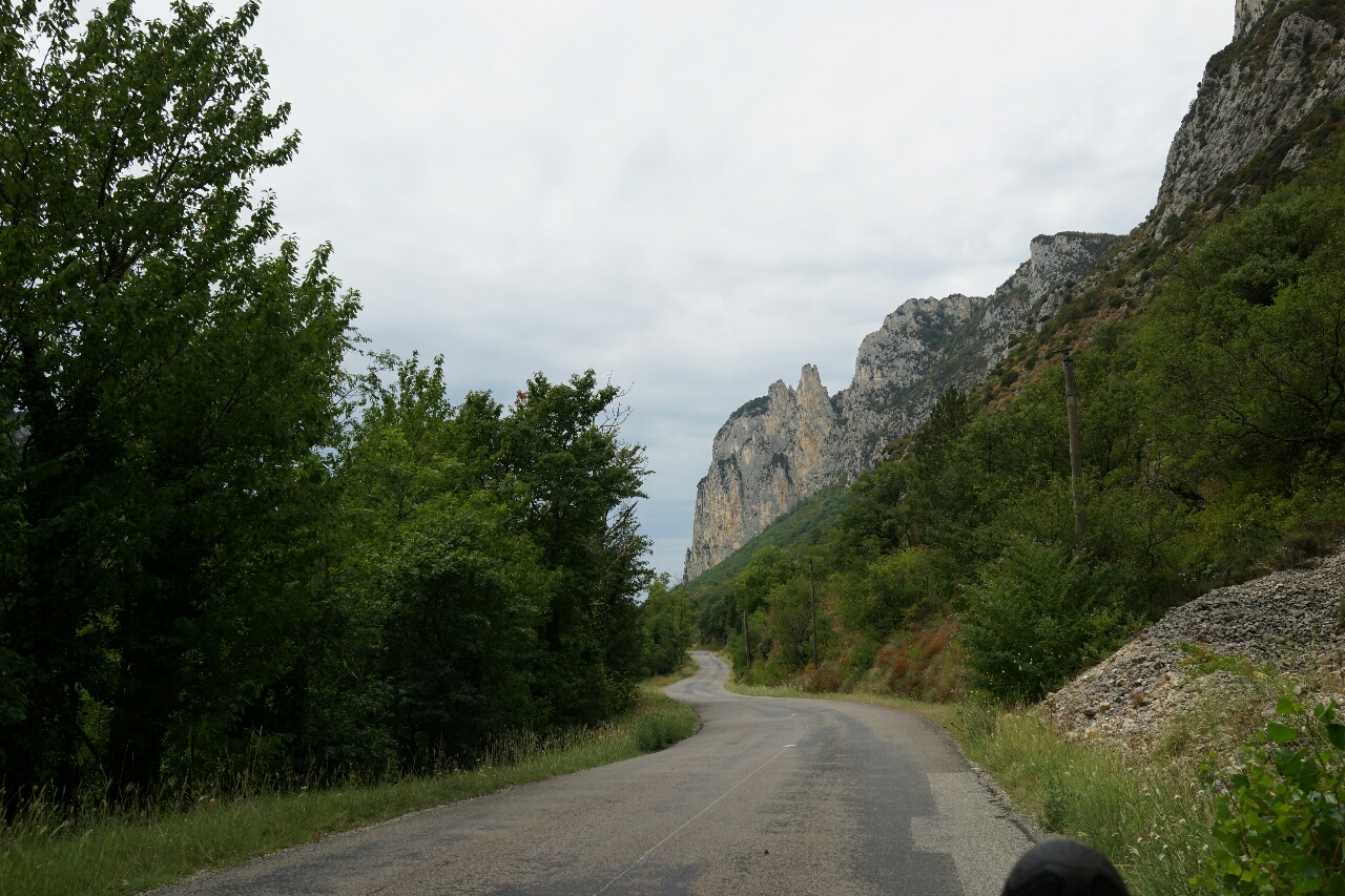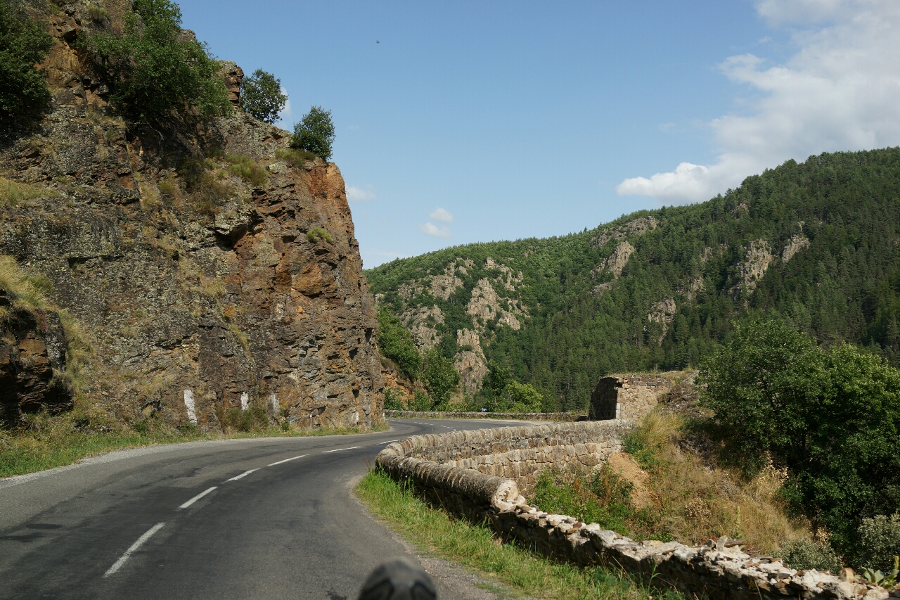 De eerste stap daarvan is dat ik het dal van de Tarn in ga om daar de Col de Finiels te passeren. Nu is dat niet zomaar een dal. De Tarn is een ruwe rivier die een diepe kloof heeft uitgeslepen in het gesteente. De weg is smal, slingerend en gaat een fors eind omhoog. Ik fiets onder steile rotswanden en langs diepe afgronden. Het is zo adembenemend mooi dat ik twijfels begin te krijgen aan die hele 100 Cols-route. De mooiste bergen zie ik sinds ik de route heb verlaten.