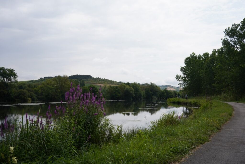 Deze omgeving is niet goed voor me, zo lijkt het. Maar vanaf Auxerre zit ik op jaagpaden langs oude kanalen en komt er meer groen, meer bomen. Steilere heuvels, historische sluizen en zelfs imponerende rotsen. Er komt wat balans in de prikkels van de omgeving.
