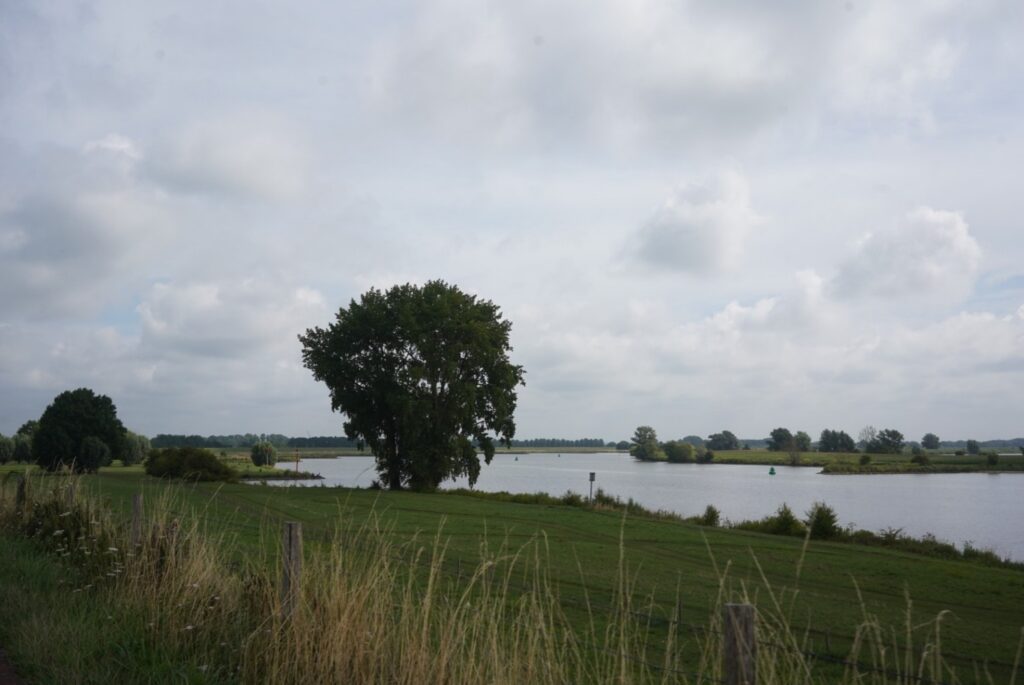 Ook vanaf Denekamp is mijn route anders dan gebruikelijk, met teleurstellend resultaat. Lang zit ik op smalle fietspaden naast N-wegen, vaak tussen maisvelden. Een stuk langs het Eems-Vechte-kanaal is fijn, maar daarna wordt het landschap pas weer mooi als ik over de Eems ben.