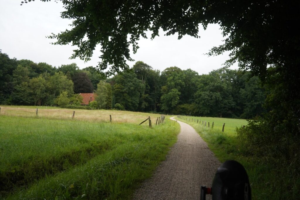 Het laatste stuk pak ik dan eindelijk weer kleinere wegen, maar dat is dan nog slechts een kilometer of tien. Ik zie weer hoe mooi en intens groen het landschap van Noord-Duitsland is, als je de grote wegen en maisvelden weet te mijden.