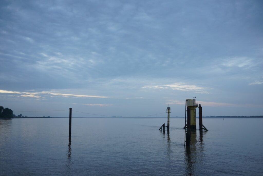 Misschien wilde ik wel te graag naar de Elbe. De wind had ik mee, het was halfbewolkt. De route ging door bossen en de aangename groene tunnels van Nedersaksen. Het moest mogelijk zijn om vóór zes uur bij een camping op Krautsand te zijn. Wellicht gunde ik mezelf daardoor iets te weinig tijd voor de koffiepauze. En voor het landschap. Nadat ik bij Juliusplate de Weser had overgestoken, ging de route geleidelijk over steeds grotere wegen, die steeds vaker door maisvelden van elk uitzicht werden beroofd.
