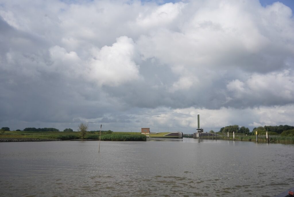 Het maakt me een tikje weemoedig, deze oversteek. Het wijdse estuarium met langgerekte eilanden, het intense groen van de dijken en de vele vuurtorens met geleidelichten voor de grote scheepvaart, ik ga het missen als ik straks deze laagvlakte verlaat.