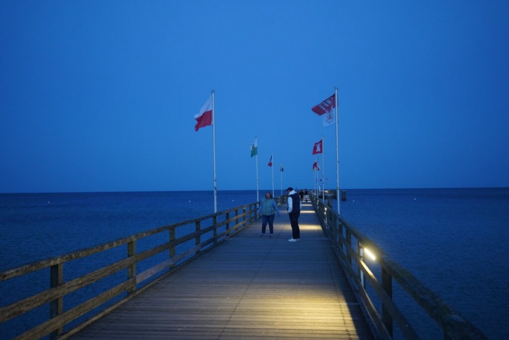 Rond zonsondergang loop ik naar de boulevard om naar de zee te kijken. Er is een houten pier zoals je ze zo veel ziet aan de Oostzee. Ik hoor de vogels en stemmen van late badgasten. Verder is het opvallend rustig. Ook dat is Oostzee.