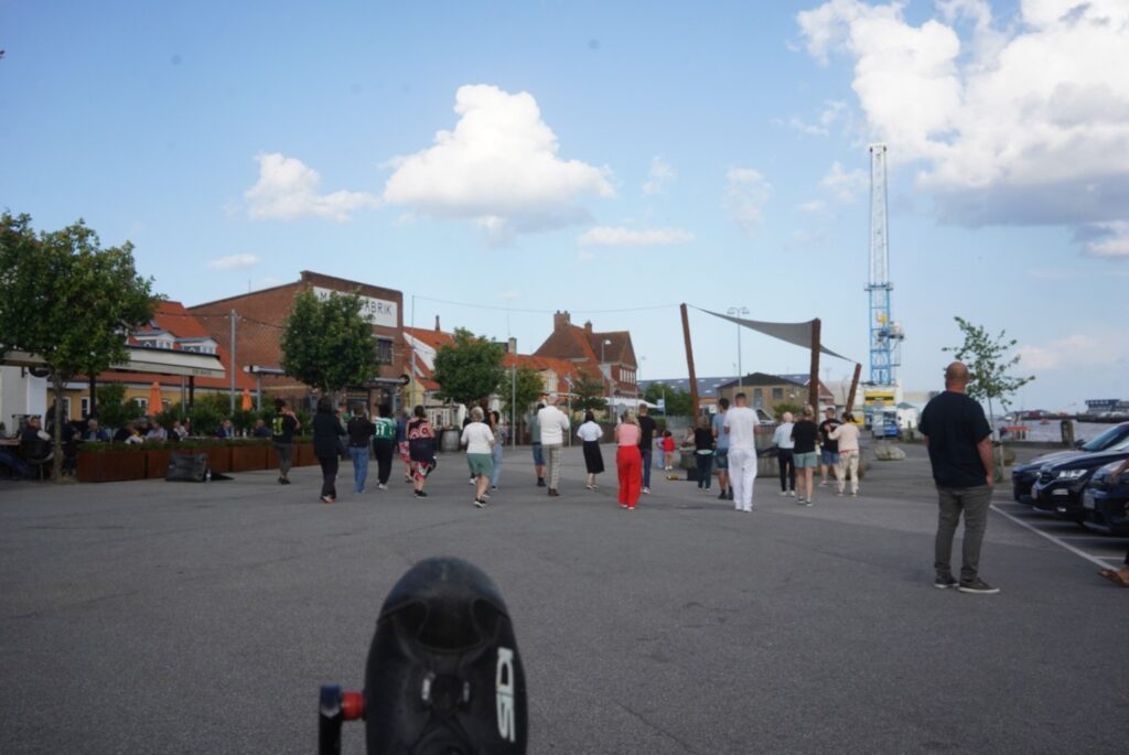Rond half zeven ben ik in Køge. Eerder te vroeg dan te laat. Als ik bij de haven arriveer, is op de straat voor de restaurantjes een dansworkshop in een Latin stijl gaande, ik vermoed samba. Ik ga zitten op het terras van het Thaise restaurant en geniet van zowel het eten als de dansende mensen.